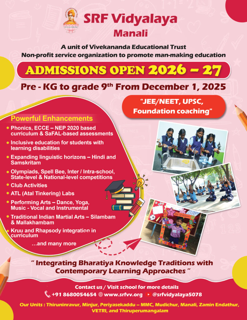 - Vandana Sabha with Panchangam & Nivedhanam, and Jenma Dinam Celebration – beginning the day with devotion, discipline, and cultural grounding.